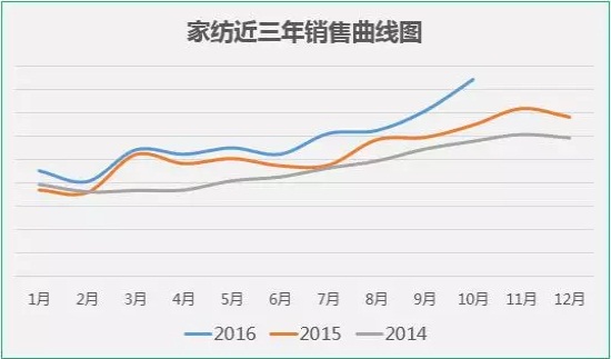 根据报告发现,家纺行业近三年一直处于逐年上升的趋势,每年销售旺季都从下半年开始。
