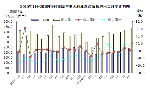 前三季度我国对澳大利亚进出口值小幅下降进出口值逐季回升